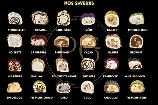 Retrouvez nos formats allant de 150g jusqu'a 1500g avec une multitude de mélanges et de saveurs, nos loukoums revisités à base de crème de noisettes avec les saveurs pistaches, framboises, amandes, figues, coco ...